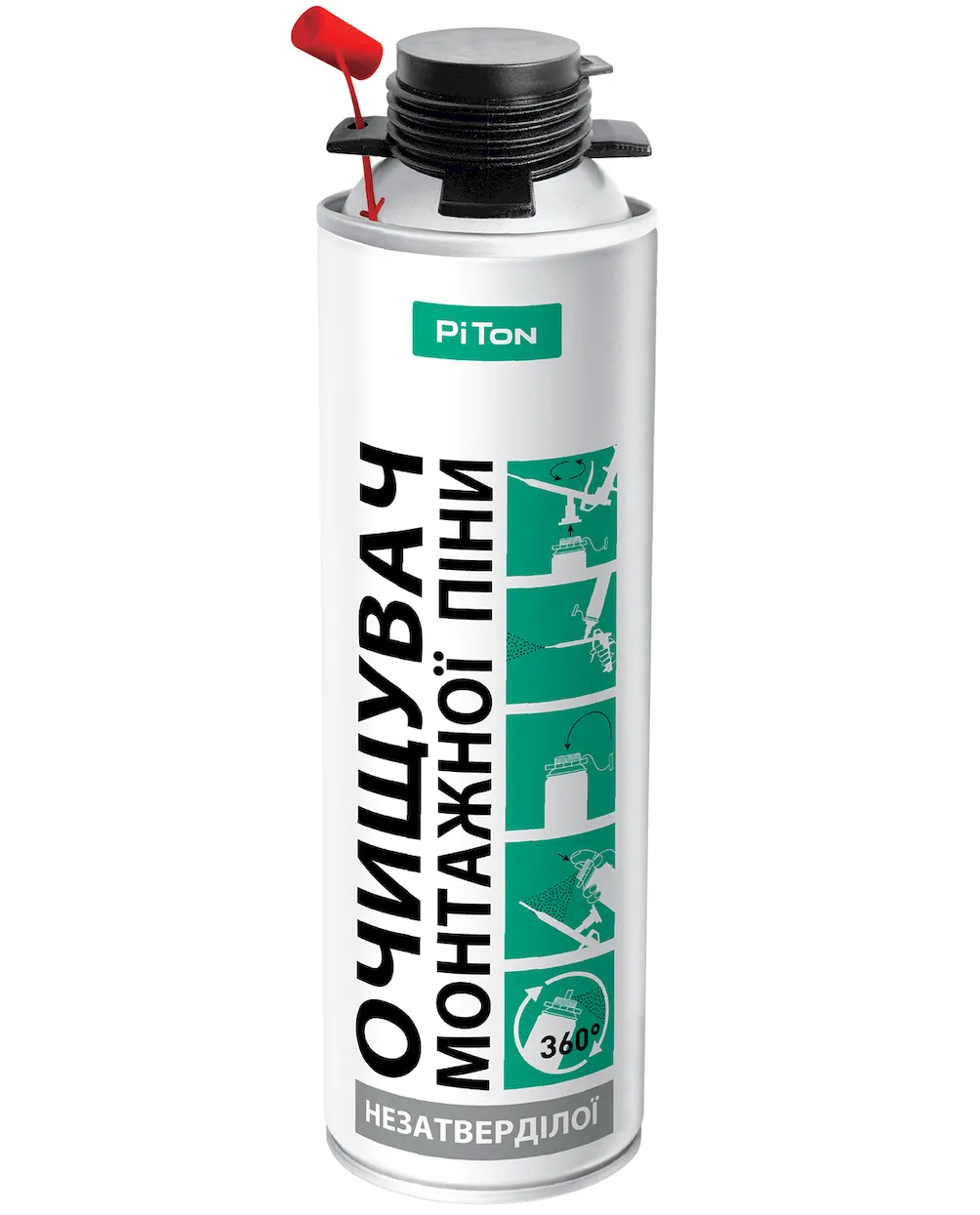 Спеціальний засіб для очищення залишків незатверділої однокомпонентної поліуретанової піни з металевих, пластикових та інших непористих поверхонь.